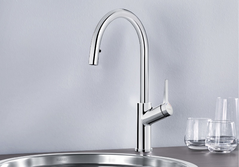 - Высокий изогнутый излив облегчает наполнение высоких кастрюль и ваз